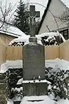 Stone cross / Kamenný kríž | Brižitská Street, near the junction with Jadranská Street | Originally built in 1868 to commemorate the building of a rectory and Dúbravka getting its own priest, it had to be rebuilt in 1943. It was destroyed in 1945 during the Second World War, rebuilt in 1946 from the money from volunteers and it was reconstructed in 1993. The small stony cross sits atop a massive rectangular pedestal. The text on the monument translates as: "All of you walking down the road, watch and see if there is pain like mine / Built from alms / Year 1946".[2] |