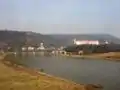 The Děčín area was settled by the Slavic tribe of the Děčané in the 9th century, whence its name. In the 10th century the Přemyslid dukes of Bohemia had a fortress built on the left bank of the Elbe ford, but after a flood, it was rebuilt on the right bank in 1059.[2] A settlement on the trade route from the Ore Mountains in the west to the adjacent Upper Lusatia region was first mentioned in a 993 deed. King Ottokar II of Bohemia (1253–1278) had the town of Děčín laid out as an administrative centre of the surrounding estates after calling in German settlers.