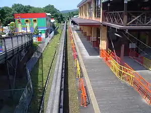 The station had one platform serving one track terminating at the station. The main gate of the station was per se the gate of Japan Monkey Park.