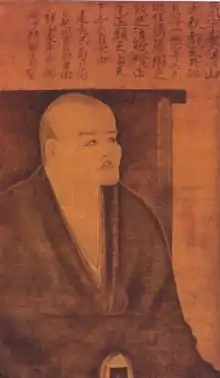 In China, Dōgen first went to the leading Chan monasteries in Zhèjiāng province. At the time, most Chan teachers based their training around the use of gōng-àns (Japanese: kōan). Though Dōgen assiduously studied the kōans, he became disenchanted with the heavy emphasis laid upon them, and wondered why the sutras were not studied more. At one point, owing to this disenchantment, Dōgen even refused Dharma transmission from a teacher.[9] Then, in 1225, he decided to visit a master named Rújìng (如淨; J. Nyōjo), the thirteenth patriarch of the Cáodòng (J. Sōtō) lineage of Zen Buddhism, at Mount Tiāntóng (天童山 Tiāntóngshān; J. Tendōzan) in Níngbō. Rujing was reputed to have a style of Chan that was different from the other masters whom Dōgen had thus far encountered. In later writings, Dōgen referred to Rujing as "the Old Buddha". Additionally he affectionately described both Rujing and Myōzen as senshi (先師, "Ancient Teacher").[3]