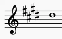D♯ (D-sharp) or re dièse is the fourth semitone of the solfège. It lies a chromatic semitone above D and a diatonic semitone below E, thus being enharmonic to mi bémol or E♭. However, in some temperaments, it is not the same as E♭. E♭ is a perfect fourth above B♭, whereas D♯ is a major third above B.