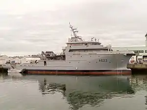 The D'Entrecasteaux class is a class of oceanic patrol ships of the French Navy. The ship's designation is Bâtiment multi-mission (B2M) in French, meaning "multi-mission ship", and sometimes dubbed the "Swiss Army knife of the Navy",[4] the type of ships is designed to perform sovereignty, law enforcement and logistics missions (such as policing illegal fishing, traffics and mining; assisting distressed ships, and search and rescue; and contributing to the logistics of Overseas collectivities[5]) from, replacing the aging BATRAL-class landing ships in this role.[6]