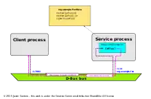 D-Bus is an inter-process communication (IPC) mechanism initially designed to replace the software component communications systems used by the GNOME and KDE Linux desktop environments (CORBA and DCOP respectively).[13][14] The components of these desktop environments are normally distributed in many processes, each one providing only a few usually one services. These services may be used by regular client applications or by other components of the desktop environment to perform their tasks.