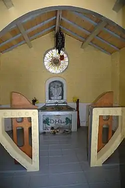 ![]() Interior of the Lawrence Memorial, with the stone containing the initials D.H.L. | |
