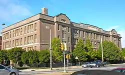 The historic building was designed by Irwin T. Catharine and built in 1922-1924. It is a three-story, eight bay, brick building on a raised basement in the Colonial Revival-style. It features two projecting entrances with stone surrounds and a brick parapet.[2]