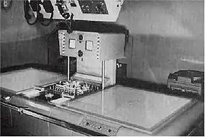 In a production setting, only one ship in a task force would carry the DATAR computer. The rest of the ships had computer terminals that allowed the operators to use a trackball based on a Canadian five-pin bowling ball[7] and trigger to send position info over the PCM links to the DATAR.[lower-alpha 2] DATAR then processed the locations, translated everything into the various ship's local view, and sent the data back to them over the same PCM links.[7] Here it was displayed on another console originally adapted from a radar unit. In contrast with the United States Air Force's Semi Automatic Ground Environment (SAGE) system, DATAR did not develop tracks automatically, relying on the operators to continue feeding new data into the system by hand.