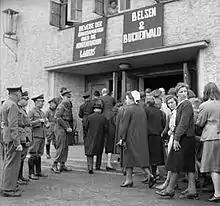 When the United States Army advanced into German-occupied territory during the final phase of the Second World War, its troops were often confronted, sometimes in the middle of battles, with traces of the crimes committed in concentration camps. The care of the mostly emaciated and seriously ill "Muselmänner",[lower-alpha 1] and the burial of the thousands of prisoners who had died by exhaustion during death marches or by shooting proved to be a difficult task for the US Army.[4]