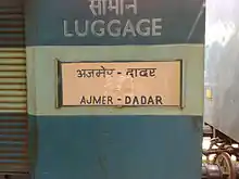 The 12989 / 12990 Dadar–Ajmer Superfast Express is a Superfast Express train belonging to Indian Railways – North Western Railway zone that runs between Ajmer Junction and Dadar in India.