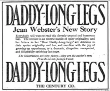 Daddy-Long-Legs is a 1912 epistolary novel by the American writer Jean Webster. It follows the protagonist, Jerusha "Judy" Abbott, as she leaves an orphanage and is sent to college by a benefactor whom she has never seen.