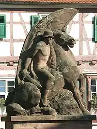 A 70 m tall rock juts above the city and is a famous destination for rock climbers during the summer. Its name Jungfernsprung ("Virgin's Leap"), is derived from an old legend.