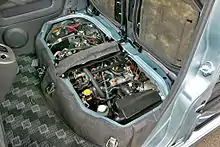 The turbocharged EF-DET engine beneath the driver's seat in a 2004-2007 Atrai (S320G)