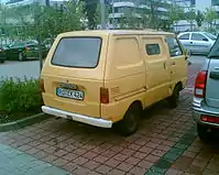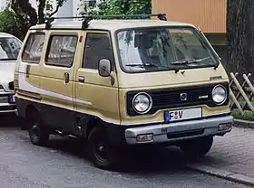 Three months after the introduction of the pickups (in June 1977), a glassed van with sliding doors and also a "panel van" version were released. The panel van was simply a truck with a box mounted on the rear; this version was not exported.[16] For export, a van version without windows or rear seats was preferred. A low floor dropside bed was added in December 1977, and a minor facelift took place in September 1978. The changes were limited to different colored bumpers and headlight surrounds, and a changed metal grille insert featuring a larger "D" logo. All versions were available in either Standard or Super DeLuxe trims, but in March 1979, a comparatively luxurious "Custom EX" version of the light van was added.[16]