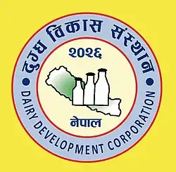 Dairy Development Corporation (Nepali: दुग्ध विकास संस्थान) or commonly known as DDC is a public enterprise owned by the Nepal Government which collects milk, produce dairy products and supplies to the customers. The corporation was established in 1969. The main aim of DDC is to guarantee market and fair price to the milk producers and supply hygienic milk and milk products to urban centres.[1] DDC has 45% of the market share in Nepal, while remaining is catered by private dairies.[2]