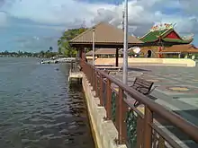 Dalat town also has a post office, district office, a hospital, a stadium (Stadium Perpaduan Dalat), a few blocks of shop-houses, a Catholic church (St. Bernard Church), a Methodist Church, a Chinese temple (age more than a century), a district mosque and a Senior Citizens’ Activity Centre (PAWE).[14] In June 2017, a voluntary fire station was launched. The fire station is an interim measure to respond swiftly to fires as the nearest facility is in Mukah, some 40 minutes’ drive away.[15] In December 2020,'Bazaarnita Fatima' and Phase 2 of Dalat Waterfront were officially opened by the Chief Minister of Sarawak, Datuk Patinggi Abang Abdul Rahman Johari bin Al-Marhum Tun Abang Haji Openg.[16]