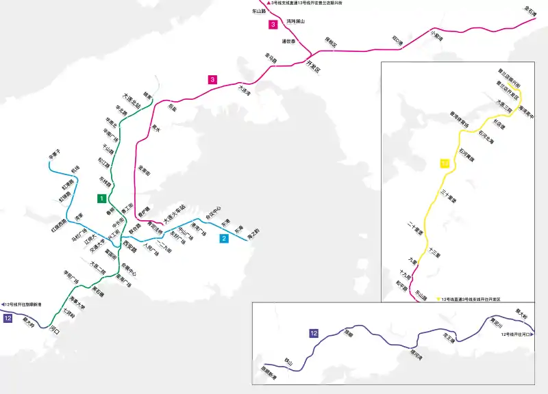 Line 12, also known as Tram Route 202 Extension Line, was opened in 2013 and connects central Dalian with Lüshunkou District. The total length is 40.35 km (25.07 mi)[2] with 8 stations from west to east. This line begins at Lüshun New Port station and stretches east ending at Hekou station, which is the interchange station with Line 1. Line 12's color is purple.