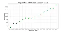 Dallas Center is a city in Dallas County, Iowa, United States. The population was 1,901 during the 2020 census.[4] It is part of the Des MoinesWest Des Moines Metropolitan Statistical Area.