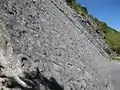 The Dalle à ammonites (or Dalle aux ammonites) at Digne-les-Bains (Alpes-de-Haute-Provence) is a remarkable natural site constituting of a rock strata bearing a large number of fossilized ammonites. This site is located approximately 1.5 km south of Digne-les-Bains from Barles road. It is part of the Géologique de Haute-Provence National Nature Reserve.
