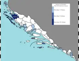 According to the Italian linguist Matteo Bartoli, by the end of the Venetian rule, 33% of the Dalmatian population was Venetian-speaking.[13] According to two Austro-Hungarian censuses,[14] the Dalmatian Italians formed 12.5% of the population in 1865 and 3.1% in 1890.