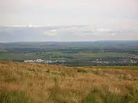 Dalry (from Scottish Gaelic Dail Ruighe 'the haugh at the slope'[2]) is a small settlement on the Rye Burn.[3] Its history has signs of early inhabitants in the area; the remains of an ancient fort, made of three concentric round walls, can be found on the summit of Carwinning Hill to the North of Dalry, west of the B784 to Largs.