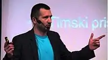 Damir Črnčec is a columnist of the best-selling centre-right weekly »Reporter«.[16] His articles have been published also by the magazines »Revija Obramba« and »Slovenska vojska«, daily »Večer« and »Vijesti«,[17] weekly »Demokracija«, and by »Slovenski Čas«, a monthly supplement to the weekly »Družina«.[18] He is also the author of security literature about Euro-Atlantic integration of the Security Systems.[19] At the TEDxFDV 2014 event he addressed the young audience with a lecture titled »Power of Young Leaders«.[20] He participated as a moderator at a strategic forum 2BS 2015 in Budva, Montenegro.[21] He is often invited to participate in TV and radio debates as a human rights activist, civil society activist or expert on global, geostrategic, geopolitic and security issues. He articulated his years-long publicistic experience in the book title »Kresovi«, which means Bonfires.[22]