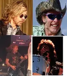 ![]() Damn Yankees in 2009. Clockwise from upper left: Tommy Shaw, Ted Nugent, Michael Cartellone and Jack Blades. | |