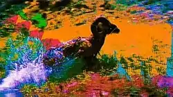 ![]() Still from footage of a bighorn sheep from El hombre y la Tierra, superimposed on the animated short Radical Updates by Andrew Benson. | |