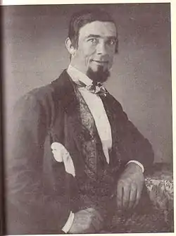 Rice's uncle was a ringmaster for the Howes & Turner[2] circus, organized in Salem, New York, in 1826. According to Rice himself, this was the first American circus to feature the canvas top that became so iconic. He traveled with this circus for 'several years' as a youngster.[3] Rice innovatively combined animals, acrobats and clowns in a circus.[1] He began performing in 1841, when he got a job of presenting a pig named Sybil whose tricks included a supposed ability tell time.[1] He moved on to singing and dancing, and briefly sang in blackface.[4] Gaining fame and popularity, he changed styles once again; he starred in various parodies of works by William Shakespeare, including that of "Dan Rice's Version of Othello" and "Dan Rice's Multifarious Account of Shakespeare's Hamlet". He would perform these with various songs and dialects. "Rice was not simply funnier than other clowns; he was different, mingling jokes, solemn thoughts, civic observations, and songs."[1] During the 1847–48 season he was working with the circus of Gilbert R. Spalding.[5]