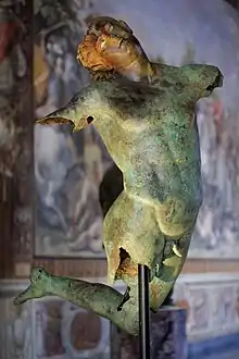 The Dancing Satyr of Mazara del Vallo is an over-lifesize[1] Greek bronze statue, whose refinement and rapprochement with the manner of Praxiteles has made it a subject of discussion. It is an example of a dancing satyr, a sculptural archetype in Hellenistic and Roman art. Another well-known example is the Faun from the House of the Faun, Pompeii.