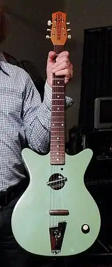 The Danelectro Shorthorn line of guitars are a dual cutaway hollow bodied design, made of Masonite and poplar. The original models were introduced in 1959 to replace the U model guitars, and were in production until the closure of the Danelectro company in 1969.