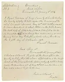 - National Archives, Washington, D.C., Daniel Freeman's Certificate of Eligibility