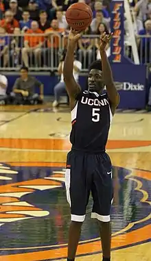 Daniel Domonique Hamilton[1] (born August 8, 1995) is an American professional basketball player for Ionikos Nikaias of the Greek Basket League. He played college basketball for the Connecticut Huskies, and earned second-team all-conference honors in the American Athletic Conference (AAC) as a sophomore. After he decided to forgo his remaining two years of college eligibility, Hamilton was selected in the second round of the 2016 NBA draft by the Denver Nuggets. His draft rights later were traded to the Oklahoma City Thunder.