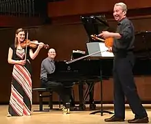 Heifetz has served as professor of violin at three major universities: The Peabody Institute of the Johns Hopkins University, Carnegie Mellon University,[8] and the University of Maryland College Park. In addition to these positions, Heifetz has given master classes all over the world. In May 2015, he was one of the featured Masterclass presenters at the Starling-Delay Violin Symposium held at the Juilliard School in New York.[9] In August and September 2016, Heifetz served on the jury of the first Shanghai Isaac Stern International Violin Competition,[10] which received recognition and engendered some controversy [11] for posting the jurors' scores throughout every round. In January and February 2017, Heifetz was the chair of the seven-member jury [12] at the first Elmar Oliveira International Violin Competition, held on the campus of Lynn University in Boca Raton, Florida.[13]