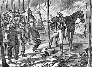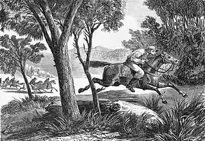 Daniel Morgan (30 April 1830 – 9 April 1865) was an Australian bushranger. Morgan has been described as "the most bloodthirsty ruffian that ever took to the bush in Australia"[1] and “one of the most determined and bloodthirsty of colonial freebooters”.[2] Many accounts of his activities, particularly in the years after his death, emphasise his brutality and erratic behaviour but Morgan had many sympathisers and informants in the districts where he carried out his activities. He was an expert bushman with superb horse-riding skills, a combination of abilities which enabled him to evade capture by the authorities for a significant period of time.[3]