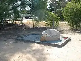 In Albury the wounded Senior-sergeant Smyth gave evidence that he believed “Morgan had ascertained that he was on his track, and that he and some of his gang… [had] crawled through the scrub up to the tent, and, having made a survey, fired into it simultaneously”. Smyth thought there were at least three assailants. He said “all the firing occupied only a few moments” and “gives his companions credit for great courage and coolness”. Despite Smyth’s initial clarity of mind in the end his wound proved to be fatal. On three occasions “the wound had commenced bleeding afresh” and despite two doctors being “in constant attendance on him”, Thomas Smyth died on 29 September.[37][38] A memorial stone honouring Senior-sergeant Thomas Smyth, with an attached plaque provided by the NSW Police Service, is located two kilometres west of Henty (on the Pleasant Hills Road).[39]