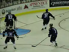 ![]() #7 Daniel Tetrault in pregame warm ups with the Wichita Thunder. | |||
