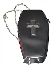 Common accessory worn by members of dark culture: a backpack in the shape of a coffin