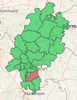 Darmstadt-Dieburg is a Kreis (district) in the south of Hesse, Germany. Neighboring districts are Offenbach, Aschaffenburg, Miltenberg, Odenwaldkreis, Bergstraße, Groß-Gerau, and the district-free city of Darmstadt, which it surrounds.