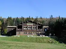1935 saw the fire which destroyed Moosilauke's log cabin. After further investment in surrounding lands, the Moosilauke Ravine Lodge was built in 1939 as one of the largest log buildings in New Hampshire.[4]