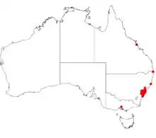 Darwinia fascicularis grows from as far north as Gosford in the Central Coast to Bulli near Wollongong. The habitat is poor sandy soils, in dry eucalyptus forest or heathlands in high rainfall areas.[11]