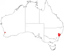 This darwinia grows on sandstone hillsides and ridges in dry sclerophyll forest between Hornsby, the Hawkesbury River and inland as far as Glen Davis.[3]