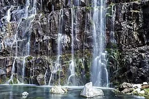 Dashbashi Canyon is known for it astounding cascading waterfalls, that provide chill in the summer. Dashbashi Waterfall takes exotic emerald color and forms dozens of frozen waterfalls in the winter. In waterfall vicinity it is also warmer in the winter than in nearby Tsalka and Dashbashi village. On the way to canyon through Tsalka there are ruins of medieval Kldekari fortress, the center of resistance of Kldekari principals against Georgian kings.[3][4]