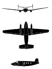 One prototype fitted with a single-finned tail, and two 600 kW (800 hp) Wright R-1300-CB7A1 Cyclone radial piston engines.