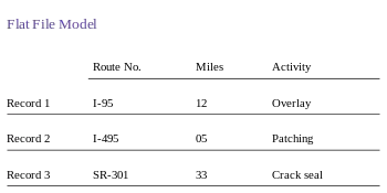 The flat (or table) model consists of a single, two-dimensional array of data elements, where all members of a given column are assumed to be similar values, and all members of a row are assumed to be related to one another. For instance, columns for name and password that might be used as a part of a system security database. Each row would have the specific password associated with an individual user. Columns of the table often have a type associated with them, defining them as character data, date or time information, integers, or floating point numbers. This tabular format is a precursor to the relational model.
