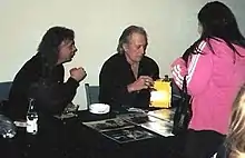Carradine co-produced a full-length documentary about luthier Stuart Mossman, which has been identified as the actor's last film appearance.[74] The Legend of Stuart Mossman: A Modern Stradivari, directed by Barry Brown, premiered at the Santa Barbara International Film Festival, in February 2010.[75] It featured David, Keith, and Robert Carradine performing their music on Mossman guitars. Mossman had appeared with Carradine in Cloud Dancer (1980), which Brown also directed, and in The Long Riders.[74] On the small screen, Carradine appeared in a guest spot on the television series Mental that was broadcast just days after his death. On October 3, 2009, Celebrity Ghost Stories premiered on the Biography Channel with an interview of Carradine discussing his belief that his closet was haunted by his wife's deceased previous husband. The segment, which was described as "eerie," was filmed four months before his own death.[76]