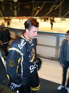 David Engblom (born June 2, 1977 in Solna) is a Swedish retired professional ice hockey player (left wing). Engblom's youth team is Vallentuna BK. From the 1995–96 season to his retirement in 2011, he played in AIK, except for the 2000–01 season, when Engblom played in Skellefteå AIK of the (now named) HockeyAllsvenskan. Engblom was one of the alternate captains in AIK. After being denied an extended contract with AIK after the 2010–11 season, Engblom retired, but instead continues to work for AIK as a materials manager.[1]