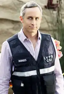 David Hodges is a fictional character portrayed by Wallace Langham on the CBS crime drama CSI: Crime Scene Investigation and its sequel, CSI: Vegas. Hodges is known for having a habit of giving far more information than anyone wants to hear while explaining things and is very afraid of germs.