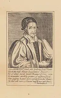 Jenkins was born at Pendeulwyn (English: Pendoylan), Glamorgan, son of a well-established gentry family. He was educated at St Edmund Hall, Oxford, admitted to Gray's Inn on 5 November 1602 and called to the bar in 1609. In March 1643 he was appointed, against his will, as puisne judge of the Carmarthen circuit of the court of great sessions. He was a strong supporter of the Royalist cause in the civil war and, later that year, was involved in raising money for the siege of Gloucester. He indicted several prominent parliamentarians for high treason. Jenkins was captured by the parliamentarians in December 1645 in Hereford and imprisoned in the Tower of London, Newgate Prison and latterly in Wallingford and Windsor Castles. Whilst in prison in the 1640s, Jenkins wrote a number of political tracts which were collectively published in 1648 as: The Works of the Eminent and Learned Judge Jenkins upon divers Statutes concerning the King's Prerogative and the Liberty of the Subject.