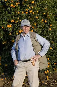 ![]() David Karp in front of an orange tree at the "Citrus Variety Collection" of the University of California, Riverside. | |
