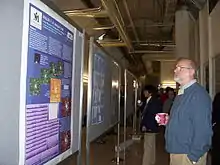 ![]() David Malin looking at a poster about Malin 1, a galaxy found by him | |