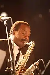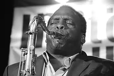 Murray was a founding member of the World Saxophone Quartet with Oliver Lake, Julius Hemphill and Hamiet Bluiett.[7] He has recorded or performed with musicians such as Henry Threadgill, James Blood Ulmer, Olu Dara, Tani Tabbal, Butch Morris, Donal Fox, McCoy Tyner, Elvin Jones, Sunny Murray (no relation), Ed Blackwell, Johnny Dyani, Fred Hopkins, and Steve McCall. David Murray's use of the circular breathing technique has enabled him to play astonishingly long phrases.[8]